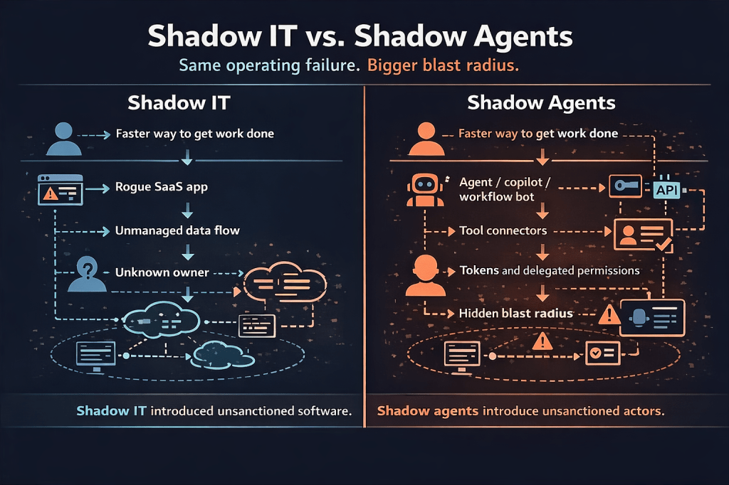 A few years ago, shadow IT meant unsanctioned SaaS, rogue cloud storage, a team buying a tool without review, or a workflow that bypassed the normal control path because it was faster and easier. The risk was never just the app. It was the unmanaged identity, the invisible data path, the missing owner, and the fact that security only found out after adoption.