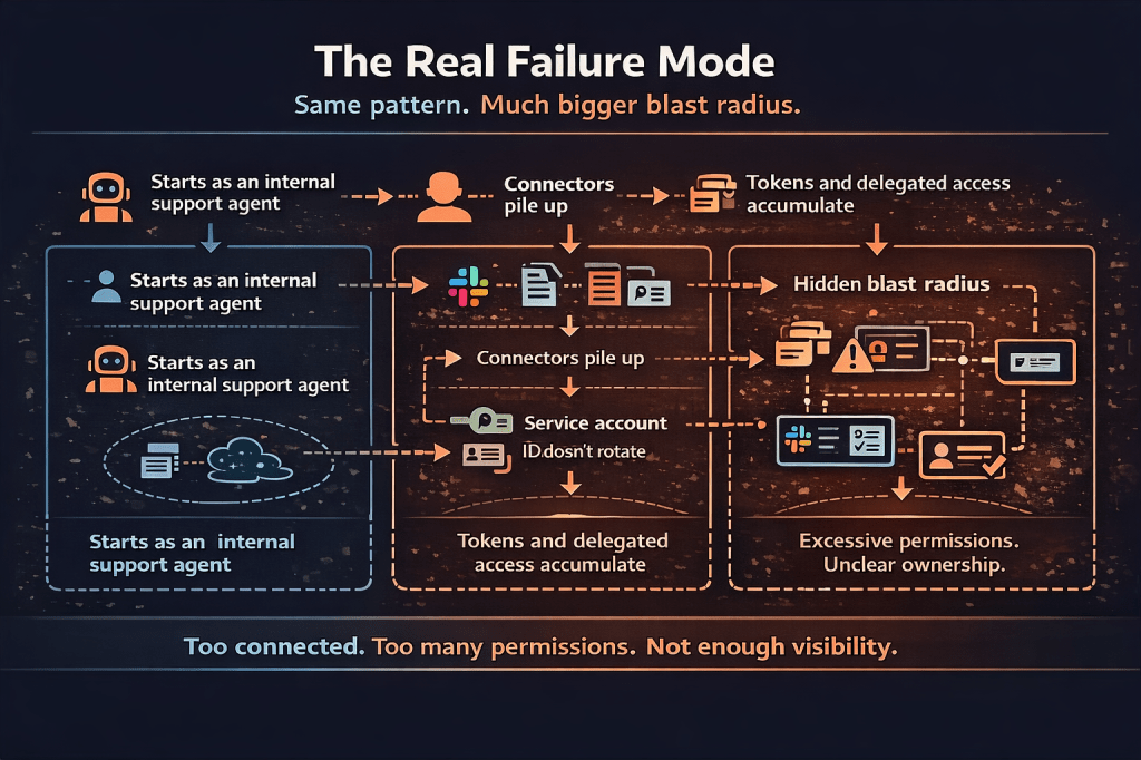 A team launches an internal support agent. Nothing wild. It can summarize tickets, read docs, pull account context, open follow-up tasks, and post into a team channel. It’s useful quickly, which is exactly why this stuff spreads.